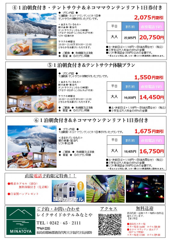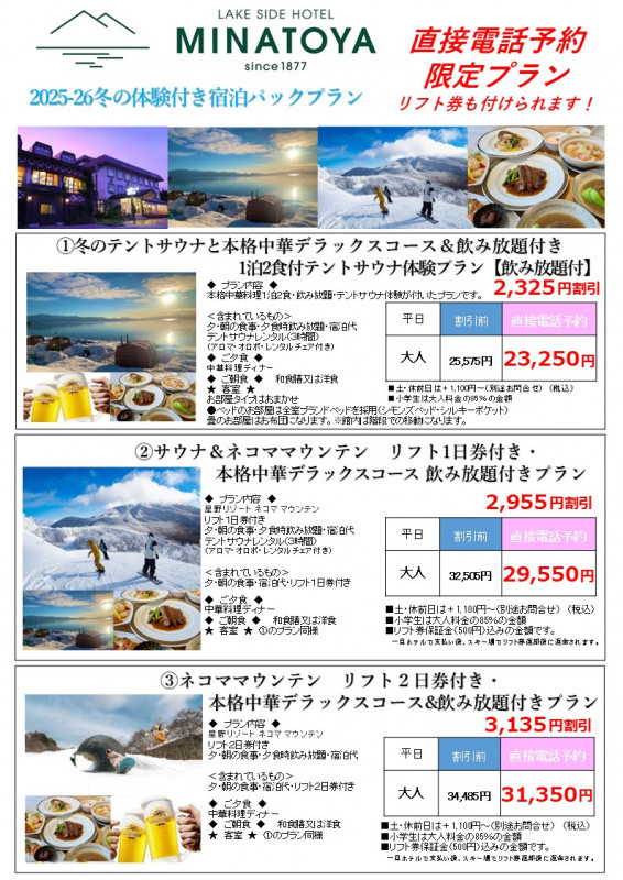 2025-26年 【冬季期間】MINATOYA 体験付き宿泊パックプラン